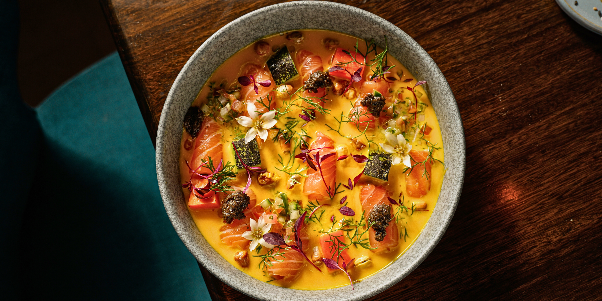 Felipe Villanueva ha desarrollado una propuesta que combina tradición, frescura y una visión contemporánea del Perú. Su inspiración nace de los viajes, la música y, sobre todo, del respeto profundo por los ajíes y sabores que dieron origen a su historia.